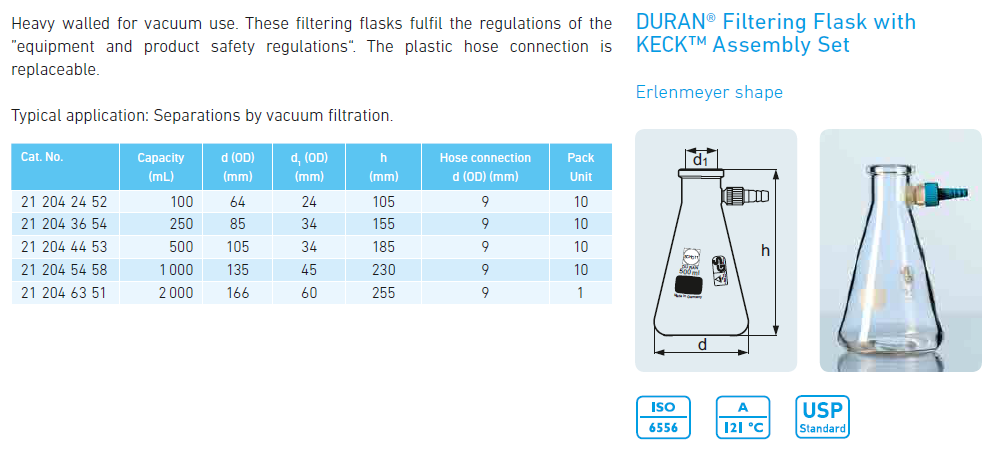 Filter flask, Schott, 1000ml, with plastic hose connection